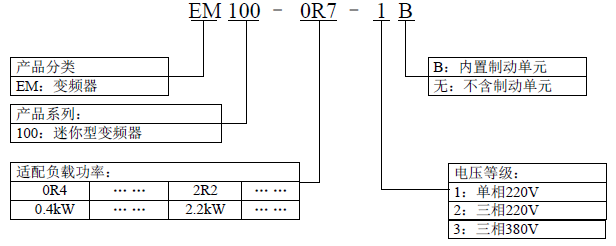 EM100变频器内置制动单元,仅需外接制动电阻,使用成本降低;